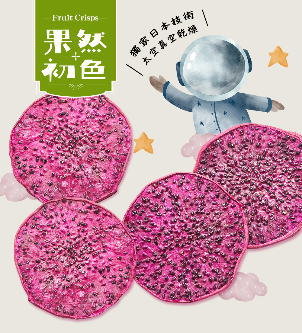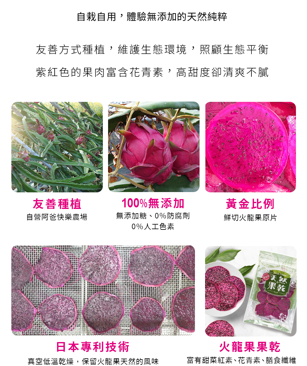 日本低溫真空乾燥技術,零添加、非油炸,不添加化學香料及色素,100%水果天然最初風味。